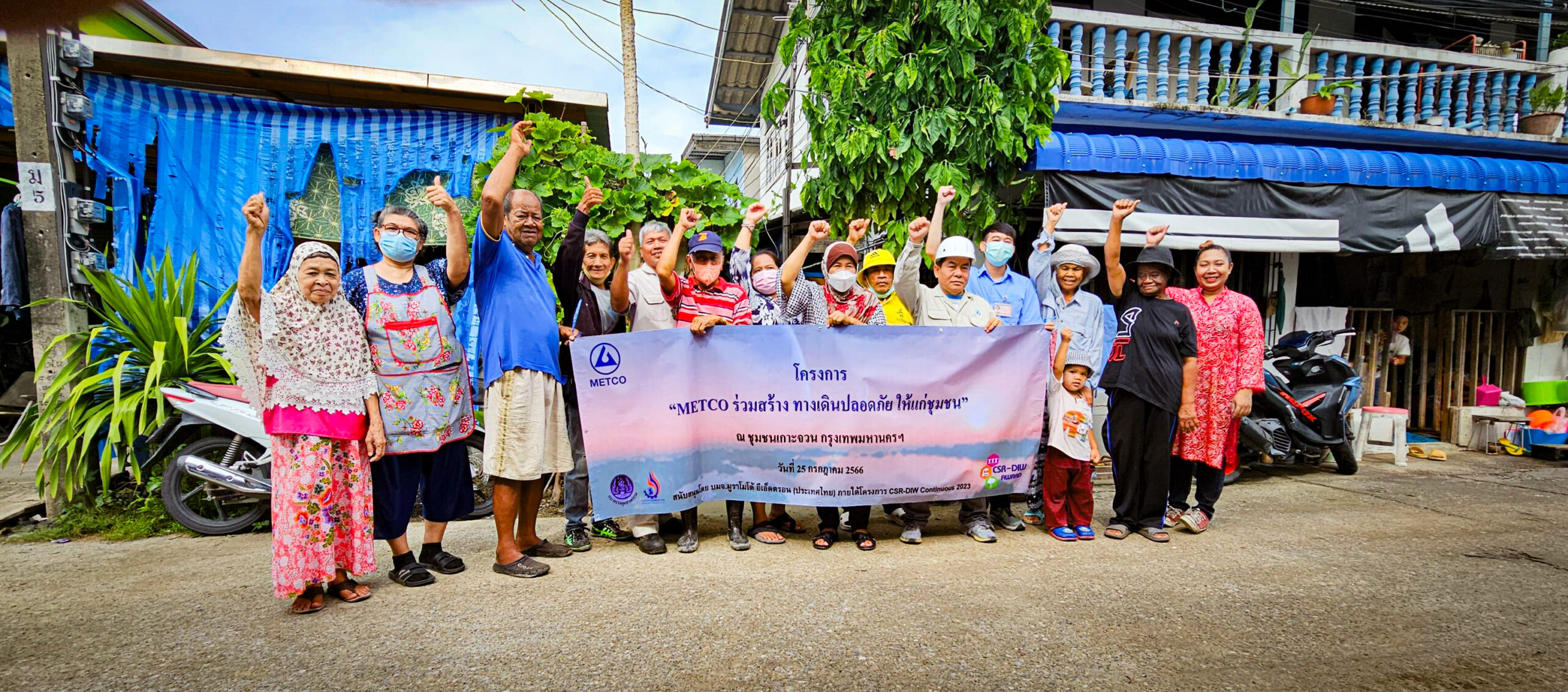 บริษัท มูราโมโต้ อีเล็กตรอน (ประเทศไทย) จำกัด (มหาชน) ตระหนักถึงการดำเนินธุรกิจควบคู่กับการดูแลสังคมจึงดำเนินการสานต่อกิจกรรมเพื่อสังคมอย่างต่อเนื่อง ในปี 2566 บริษัทได้จัดตั้งโครงการ “METCO ร่วมสร้าง ทางเดินปลอดภัย ให้แก่ชุมชน” ณ ชุมชนเกาะจวน สืบเนื่องมาจากการสานเสวนากับตัวแทนชุมชน และพบว่าถนนที่ใช้ในการสัญจรชุมชนมีลักษณะขรุขระ มีน้ำท่วมขังและมีลักษณะแคบ โดยทางดังกล่าวยังใช้เป็นทางเดินเท้าร่วมกับทางรถจักรยานยนต์และรถจักรยาน ซึ่งส่งผลกระทบในด้านชีวิตความเป็นอยู่และความปลอดภัยของคนในชุมชน ทางบริษัทจึงร่วมกับชุมชนหาแนวทางการแก้ไขปัญหาดังกล่าวจึงได้จัดตั้งโครงการขึ้น ทั้งนี้เพื่อให้ผู้สัญจรในชุมชนเกิดความสะดวกและปลอดภัยในการสัญจร และเป็นส่วนหนึ่งในการลดอุบัติภัยและความสูญเสียที่อาจจะเกิดขึ้น